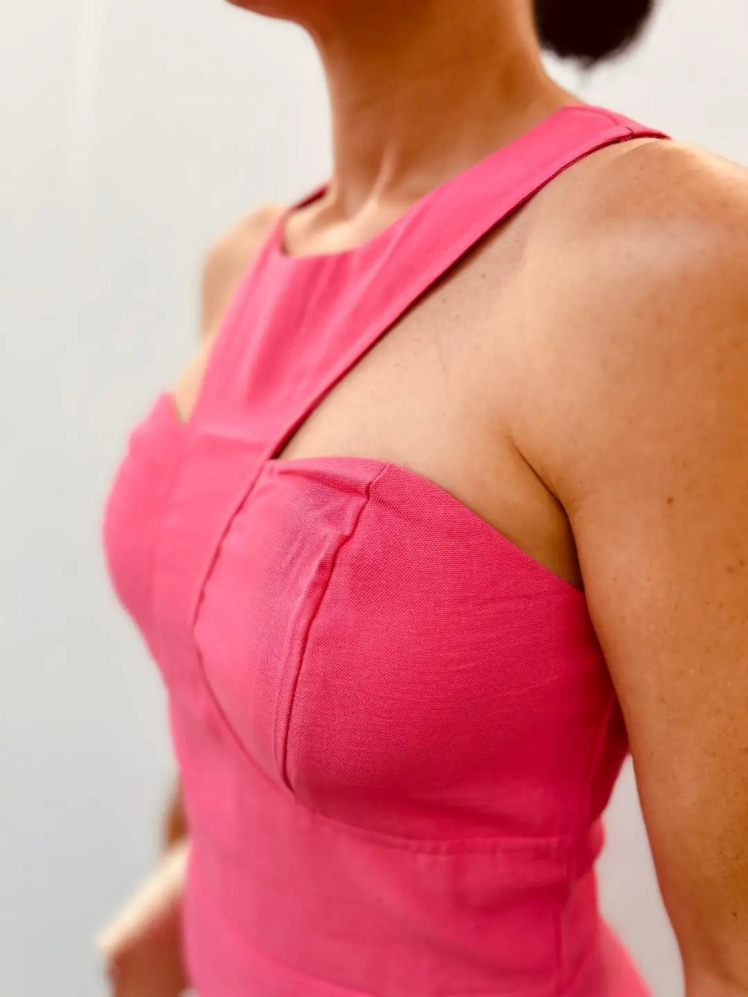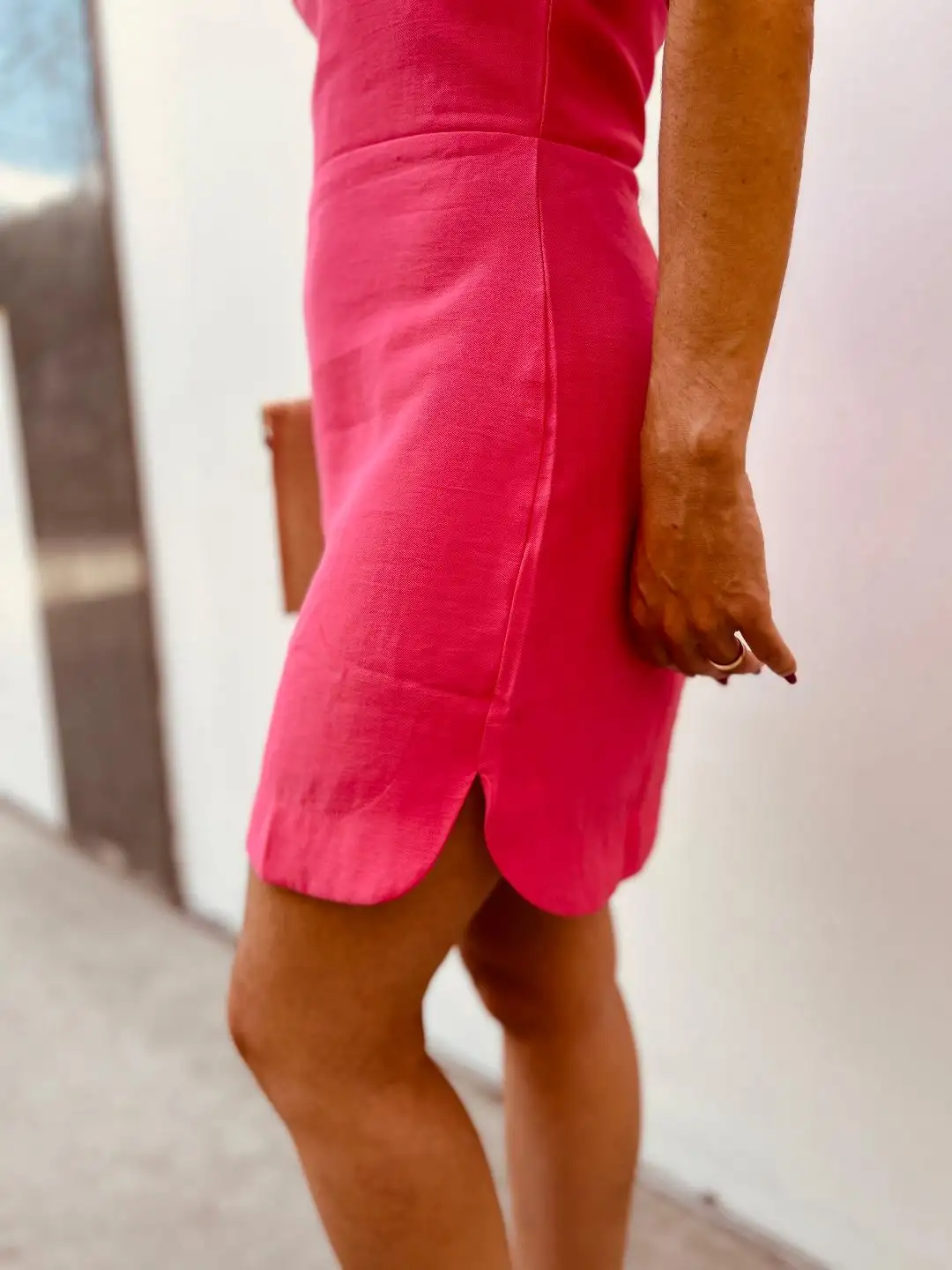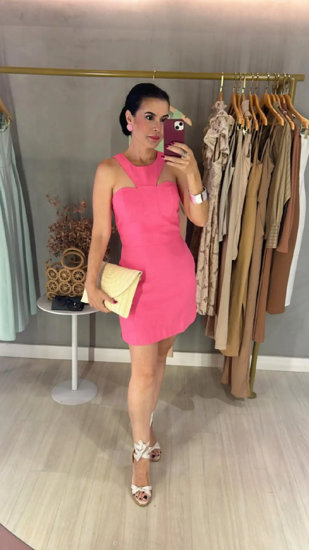 Simples e minimalista, mas com recorte no decote e na saia que fazem toda diferença!