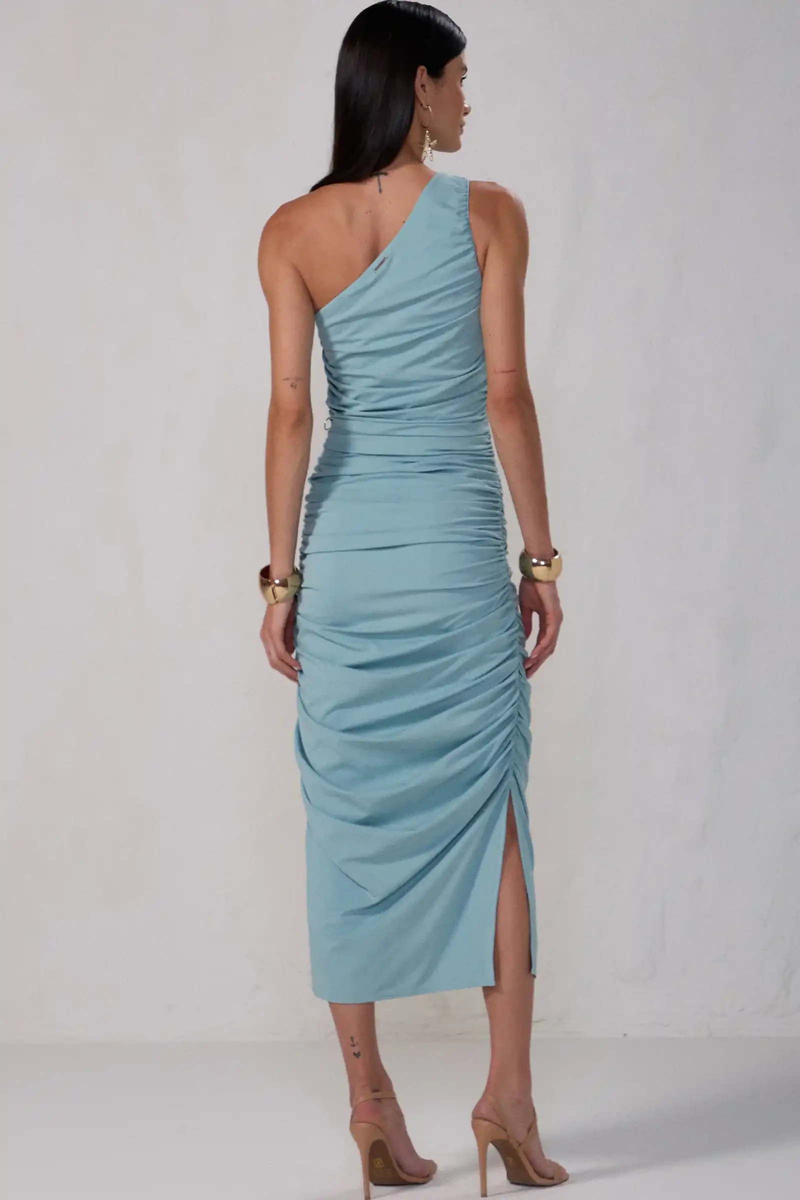 - Decote Ombro Único (One Shoulder): O corte assimétrico moderno valoriza o colo e os ombros de forma chic e sutil.