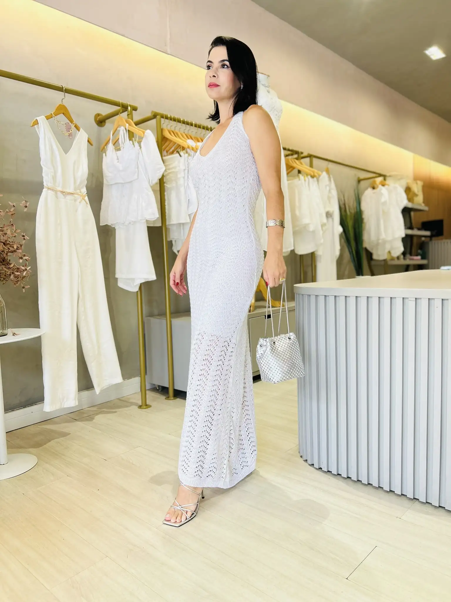 VESTIDO TRICÔ COM FIOS PRATEADOS